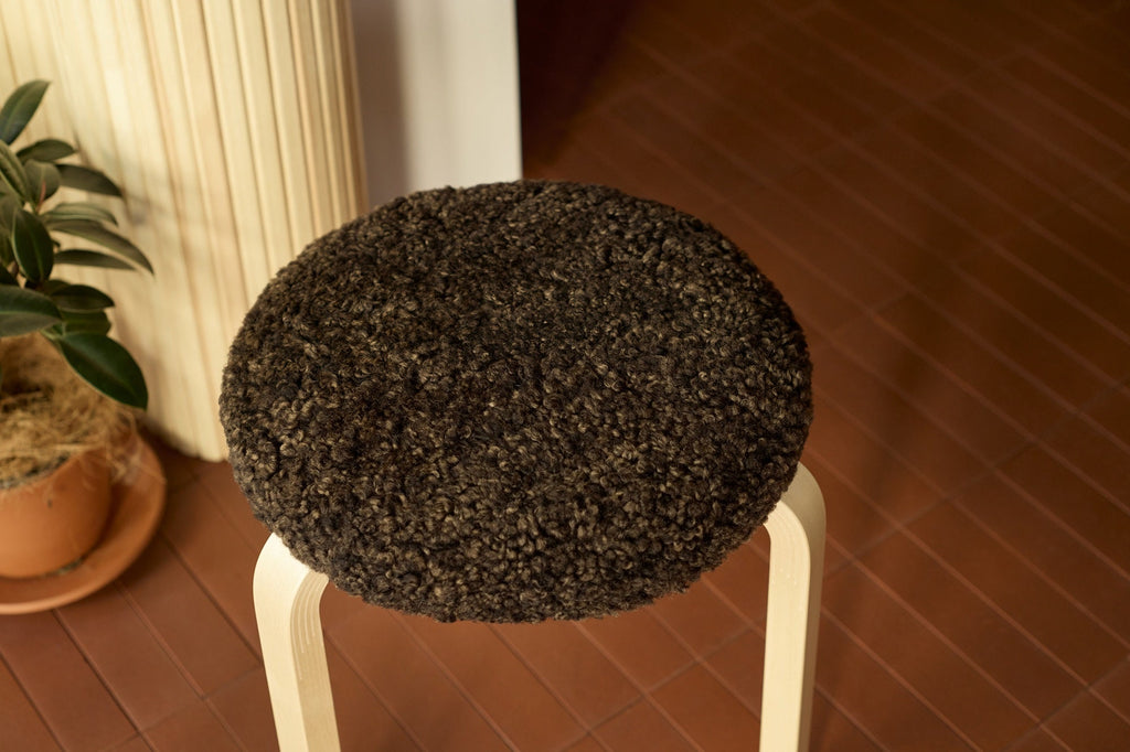 きめ細かく、柔らかく、通気性に優れたシープスキンを張った「スツール 60 シープスキン」が新入荷。羊革の中でも、シープスキンは生後1年以上が経過した羊から採れる革を指します。羊革は脂肪が多いことから、強度では牛革などに比べるとやや劣りますが、逆にきめ細やかさと柔らかさがあり、さらに繊維の隙間に空気が残ることによって、高い保温性があります。ふんわりとした雰囲気で、インテリアに優しさと温かみを添えてくれる2種類の組み合わせで展開します。