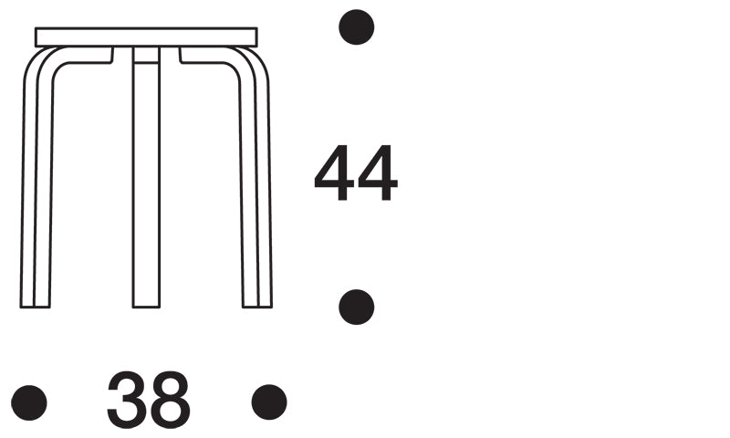 アルヴァ・アアルトによりデザインされた四本脚の「スツール E60」。三本脚の「スツール 60」同様にスタッキングが可能で、公共のスペースや教育機関、家庭での使用に適しています。椅子としてだけでなく、ローテーブルや、インテリアアクセサリーを飾る台としてなど、汎用性があり、円形の座面の裏に、直接脚を取り付けるシンプルな構造です。安定性に優れ、お子様のご使用には「スツール E60」をおすすめしています。フィンランドの国内外へと出荷された「スツール 60」と四本脚の「スツール E60」は、これまでに数百万脚にのぼり、時を越え、国や文化を越え、世界中で愛され続けています。