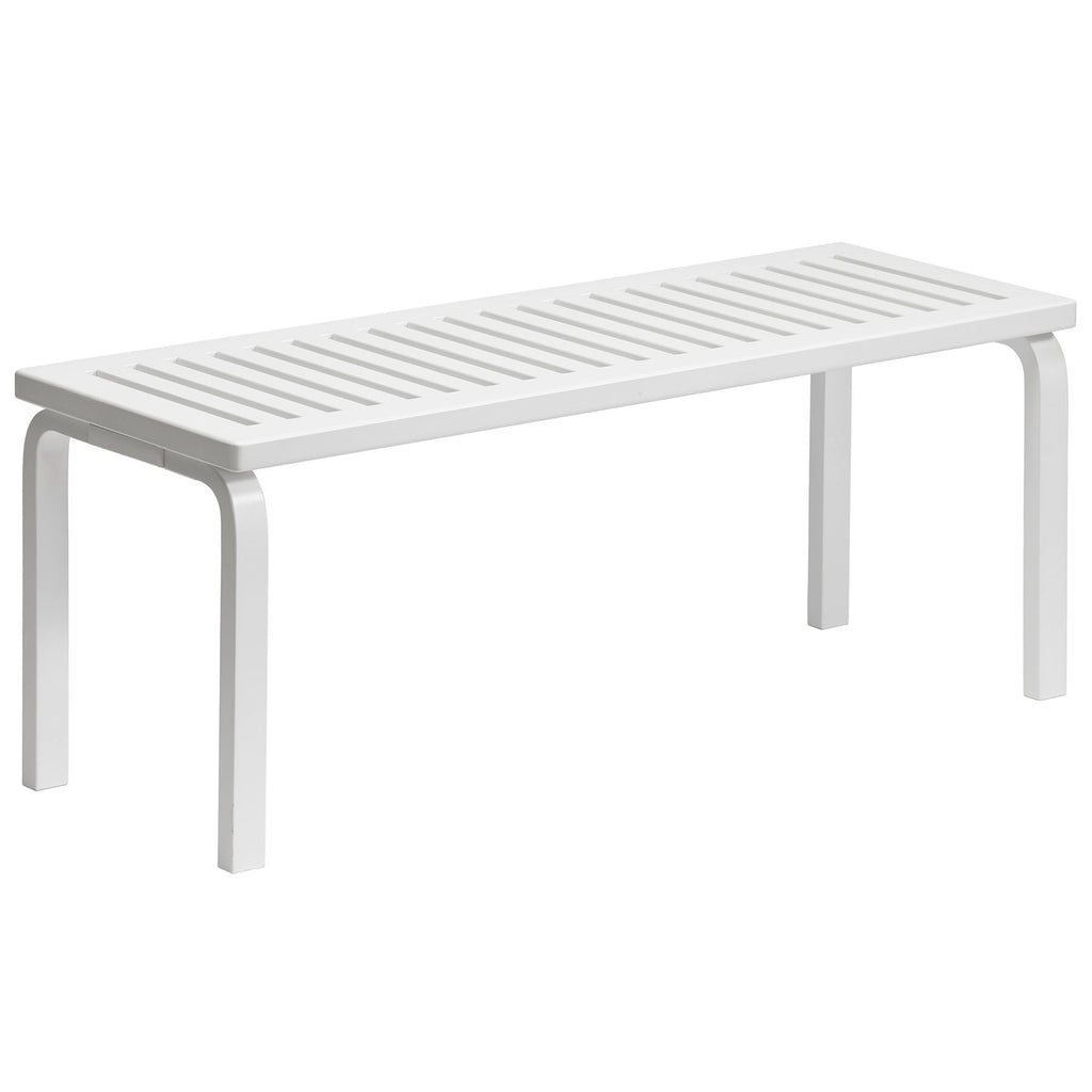 頑丈なバーチ材から作られる「ベンチ 153」の座面には、軽量化と持ち運び易さを追及した隙間が等間隔に施され、公共のスペースから家庭まで、あらゆる場所で使用できる汎用性があります。アルヴァ・アアルトが開発した「L - レッグ」を部品として応用するL - レッグシリーズは、複雑な構造や組み立てを必要とせず、座面に直接L - レッグを脚部として取り付けることができます。1945年にデザインされた「ベンチ 153」は、L - レッグシリーズの中でも後期の名作として、スツールやチェア、テーブルなど初期の製品とも自然に馴染み、ともに愛され続けています。112.5cmのベンチ 153Aと、72.5cmのベンチ 153Bのバリエーションがあります。 - Materials