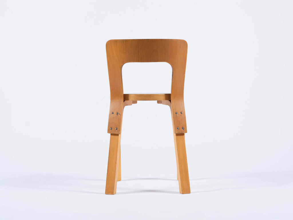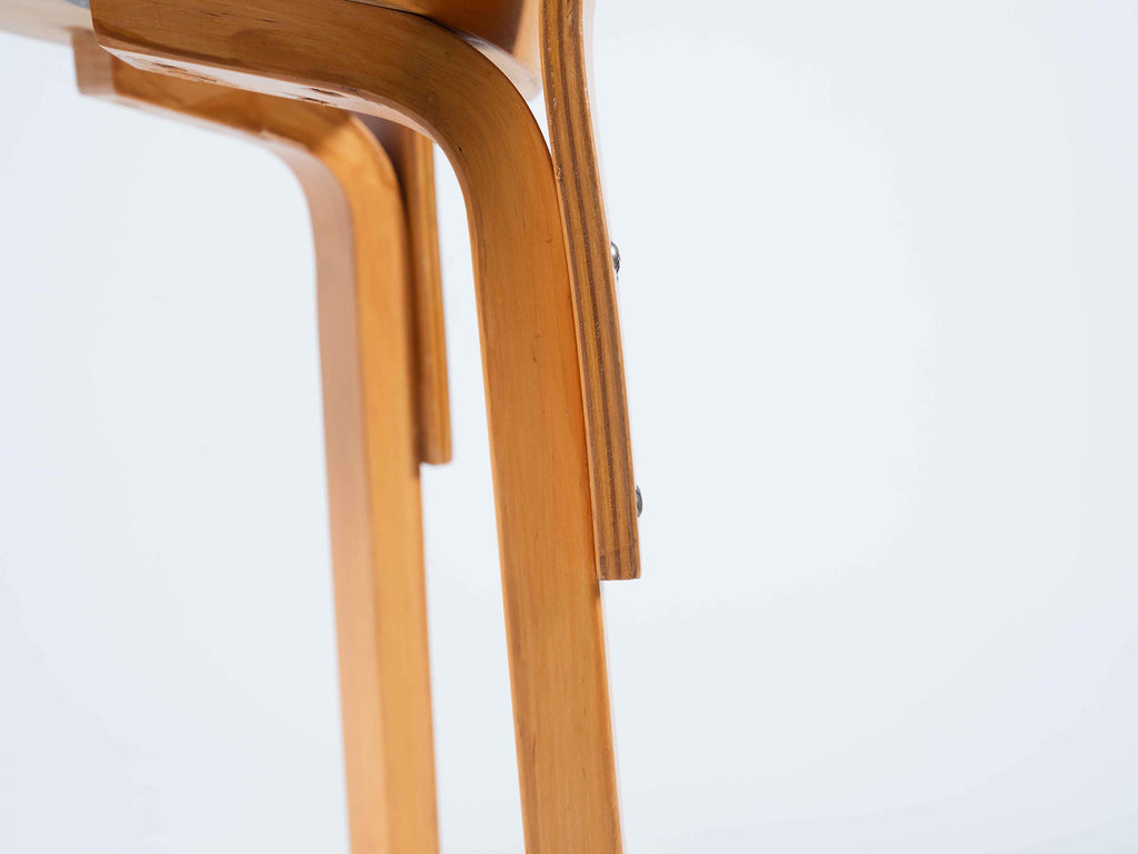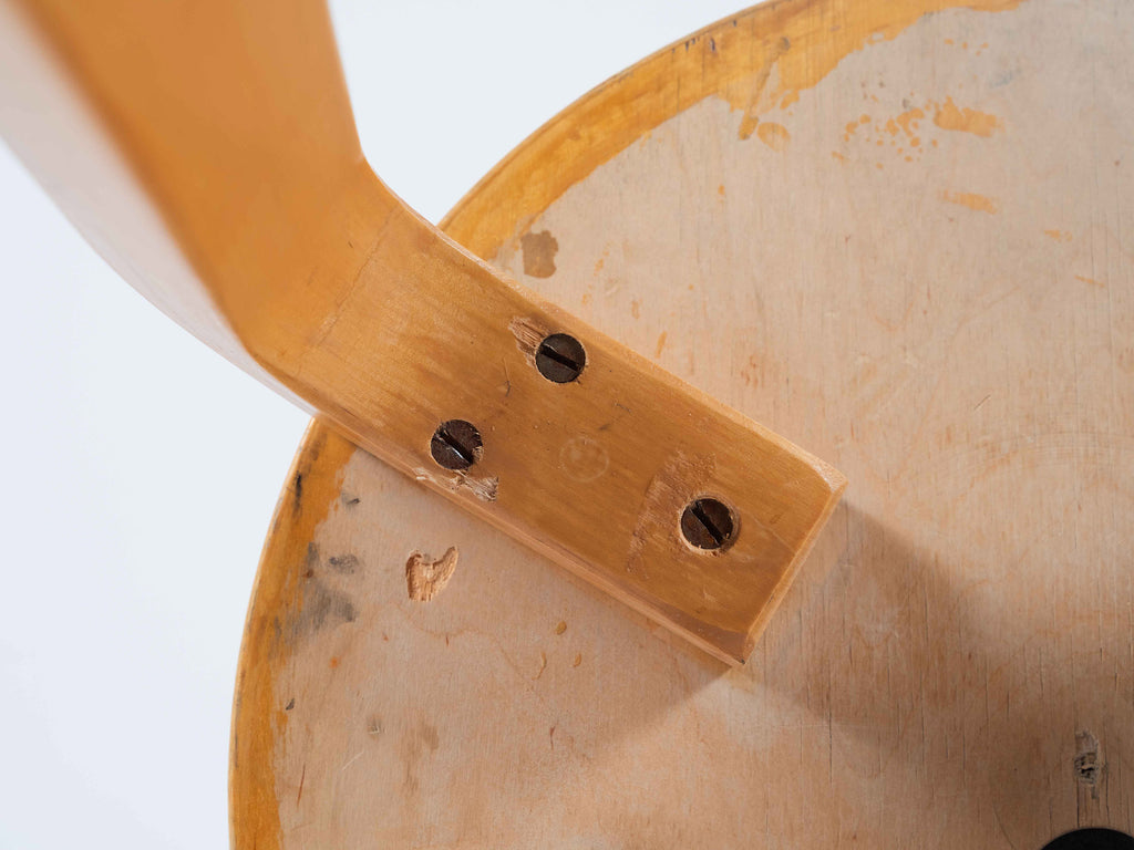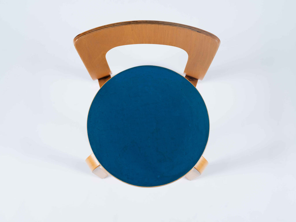 「2nd Cycle チェア 65 ブルー リノリウム」は1950 - 60年代製造のチェアです。廃版のブルーリノリウム座面には、経年変化による美しいパディナが見られ、現在使用されていないマイナスねじは、古い時代に生産された希少なチェアであることを証明しています。 -
