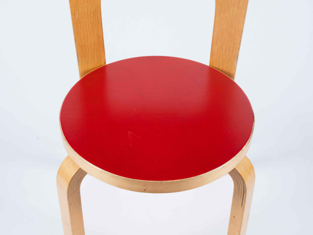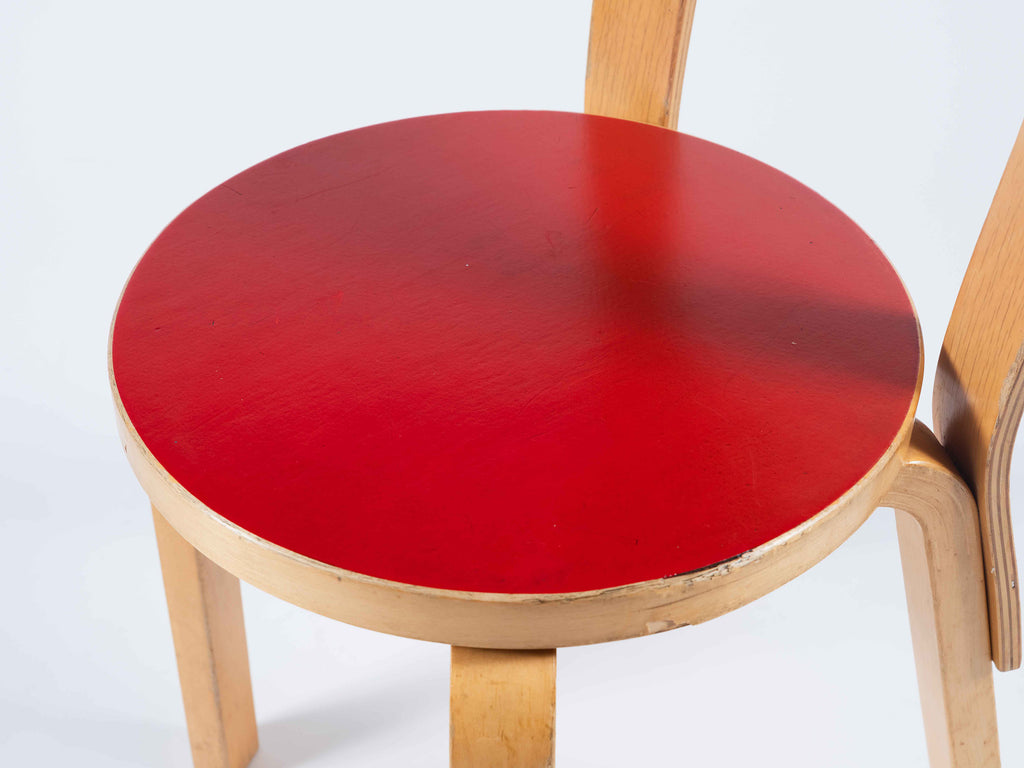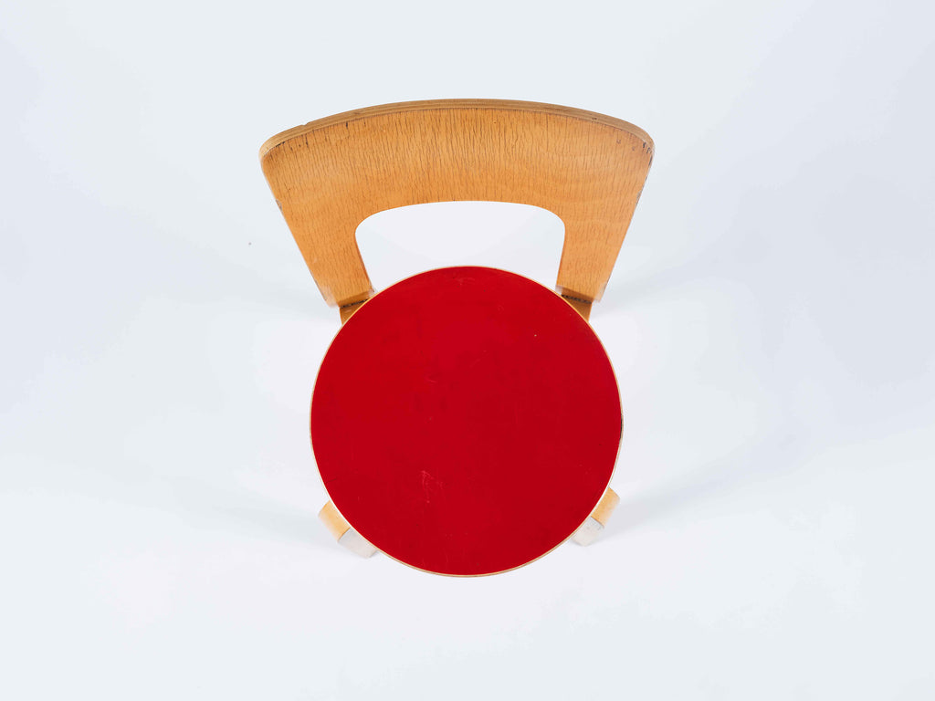 「2nd Cycle チェア 66 レッド リノリウム」は1950 - 60年代製造のチェアです。廃版のレッドリノリウム座面には、経年変化による美しいパディナが見られ、現在使用されていないマイナスねじは、古い時代に生産された希少なチェアであることを証明しています。 -