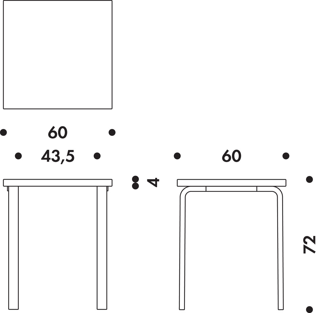 正方形のアアルトテーブルは、壁につけても、部屋の真ん中に設置しても、コンパクトな空間を有効に使うことができます。さらに他の形のアアルトテーブルと組み合わせて、暮らしの数だけ無限の使い方が存在します。「テーブル 80C (60×60cm) 」は、長方形の「テーブル 80A (120×60cm) 」や半円の「テーブル 95 (120×60cm) 」と組み合わせて、さまざまなテーブルセッティングが可能です。