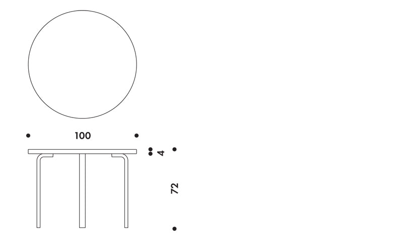 テーブル 90A(d. 100)ホワイト ラミネート