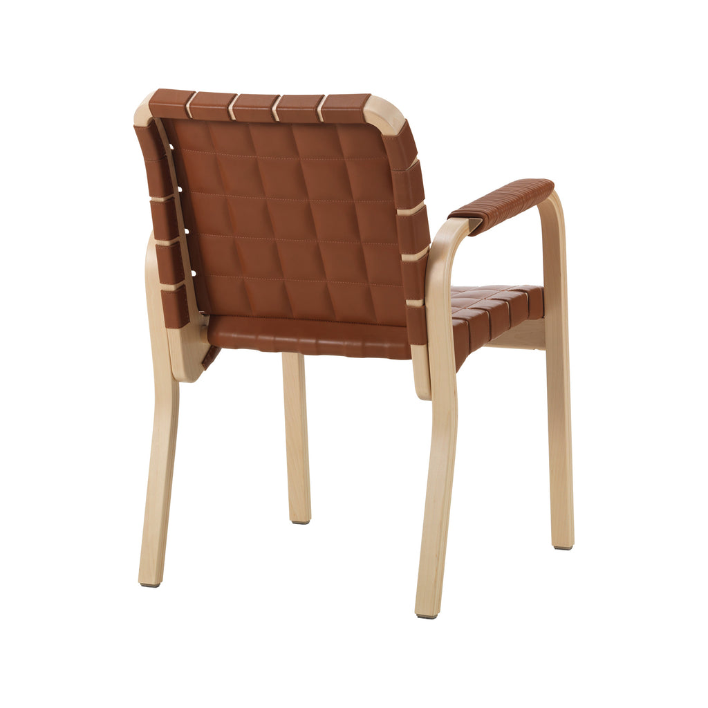 自然素材の魅力にあふれる「アームチェア 45」は、ディテールの細工が、軽やかな印象を抱かせます。フィンランド産バーチ材のフレームに、キルティングレザーとリネンウェビングのバリエーションを揃えています。その快適さは、ティーリマキのスタジオで革張りの「アームチェア 45」に腰かけてくつろぐアルヴァ・アアルトのアーカイブ写真が物語っています。 普遍性の高いこのチェアは、住まいのダイニングテーブル、書斎のデスク、リビングの主役として、さらにレストランや会議室、ワークプレイスなどの公共空間においても同様に馴染みます。 -