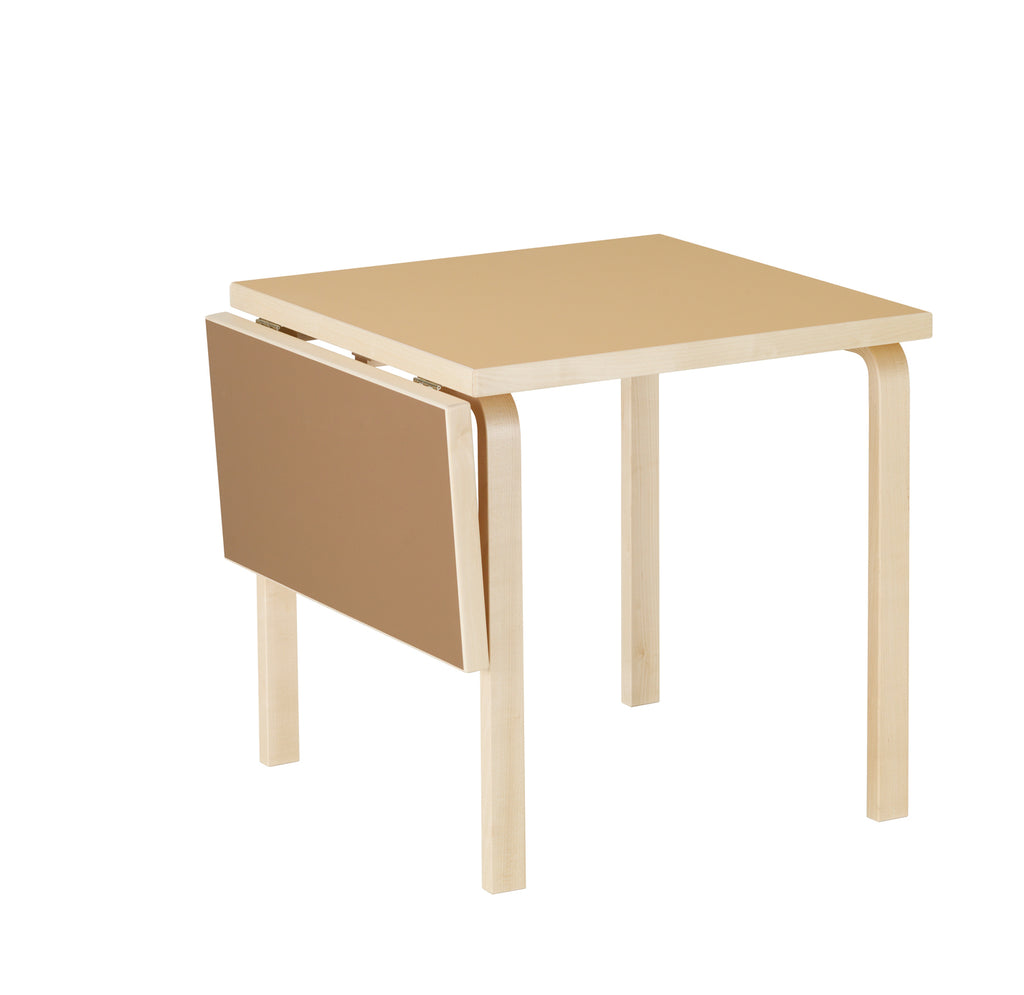 ツートンカラーリノリウム天板の「ドロップリーフ テーブル DL81C」は、2024年の復刻を記念した特別モデルです。2色の組み合わせは、それぞれの天板が経年変化を遂げることで微妙に色が異なる、Artek 2nd Cycle 製品から着想を得ています。使用しないときは天板の片側を折り畳み収納することができるため、天板にあたる光や使用の頻度が異なり、それぞれの段階で美しく味わいを増していきます。