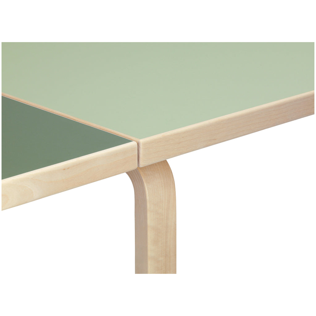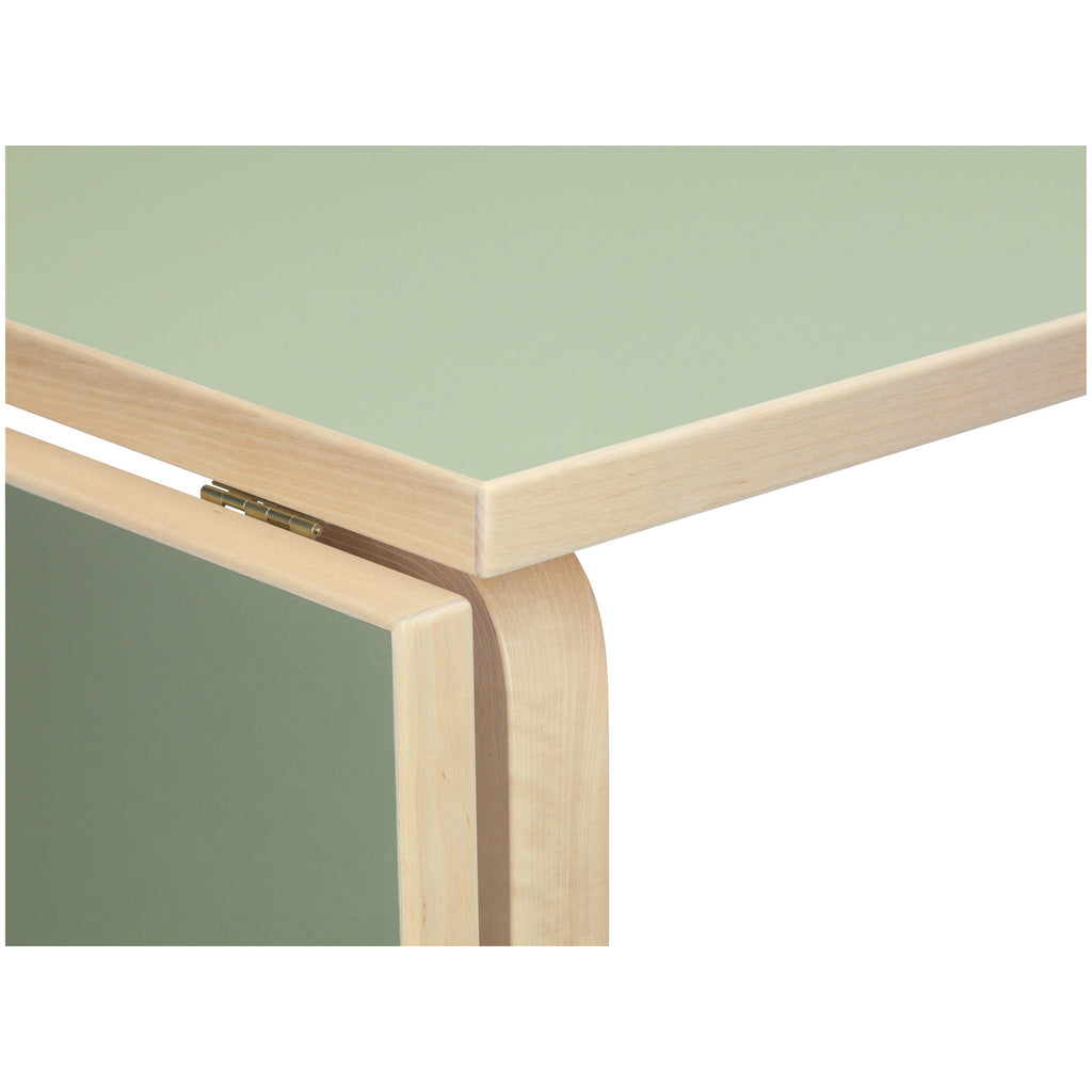 ツートンカラーリノリウム天板の「ドロップリーフ テーブル DL81C」は、2024年の復刻を記念した特別モデルです。2色の組み合わせは、それぞれの天板が経年変化を遂げることで微妙に色が異なる、Artek 2nd Cycle 製品から着想を得ています。使用しないときは天板の片側を折り畳み収納することができるため、天板にあたる光や使用の頻度が異なり、それぞれの段階で美しく味わいを増していきます。