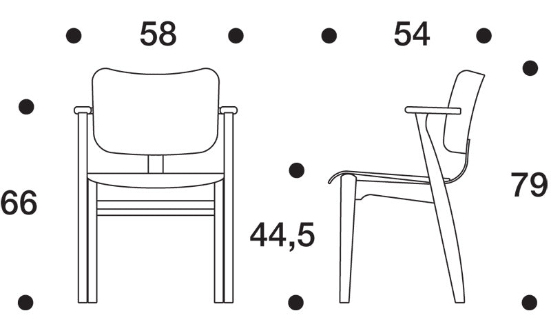 近代的な家具デザインの名作とも称される「ドムス チェア」は、イルマリ・タピオヴァーラにより、ヘルシンキの学生寮「ドムス アカデミカ」のためにデザインされました。高い評価を受けた「ドムス チェア」は、フィンランドを代表する椅子として「フィンチェア」という愛称でも呼ばれるようになります。三次元に曲線を描く、人の身体に沿った座面など、長期間座っても疲れにくく、心地良く過ごせるデザインを追及しています。特徴的な小さめの肘掛けは、肘置きとしての役割をきちんと果たしながら、テーブルに椅子を引き寄せやすいように考慮されています。1946年に誕生した「ドムス チェア」は、今もなお、世界中で愛され続けています。 -
