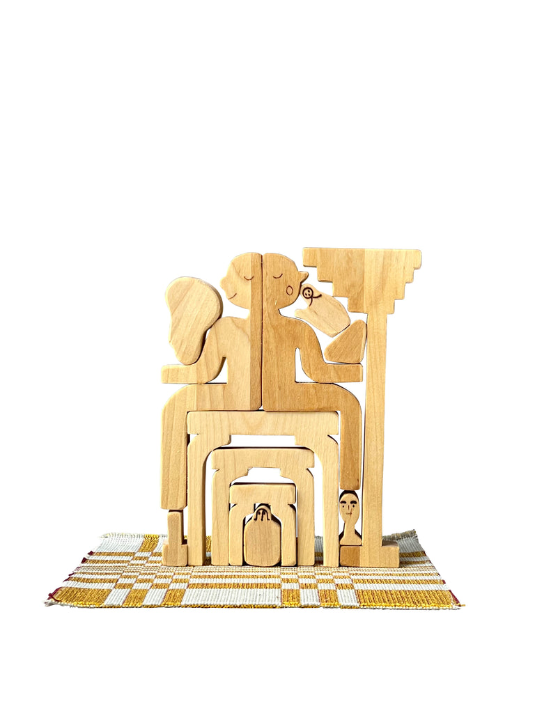 「PLAY HOME」は、アルテックの工場から調達したバーチ材の端材と、ヨハンナ・グリクセンの生地を使ったアルテック限定の木製パズルです。フィンランドのヨウツァで職人によりひとつひとつ手作りされています。