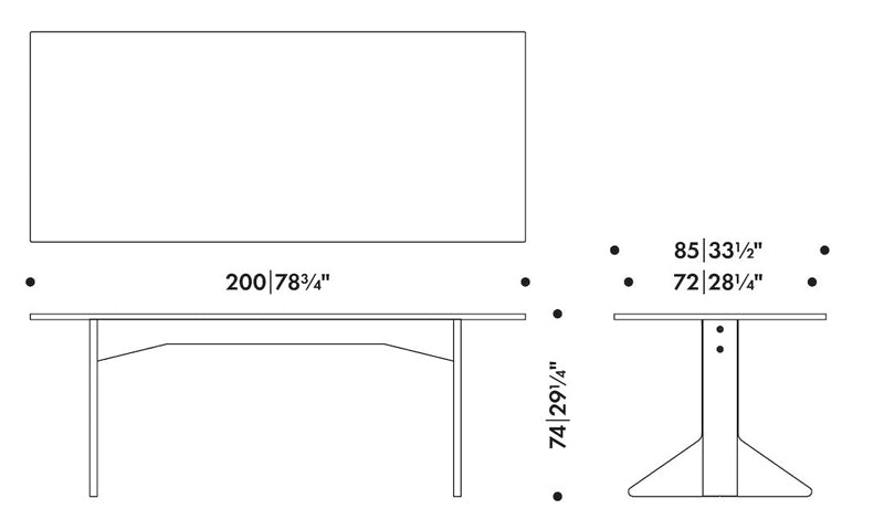 カアリ テーブル REB001(200 x 85)ナチュラル オーク/ブラック リノリウム