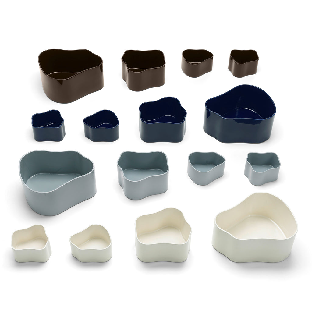 セラミック製の「リヒーティエ プラント ポット」は、ヘルシンキ、リーヒティエ通りにあるアアルト自邸のためにアイノ・アアルトがデザインしました。自然や自然素材に対して親しみ、そして、プロダクトの細部に至るまで大切にするアルヴァ・アアルトとアイノ・アアルトの信念を具現化した製品ともいえます。この植木鉢は、1937年のパリ万博で展示され注目を集めたものの、当時は製品化にまで至りませんでしたが、2017年に屋内用として2つの形と3つのサイズで製品化しました。アアルトの主な建築に用いられているタイルから着想を得た素材を選び、ひとつひとつ人の手によって作られています。