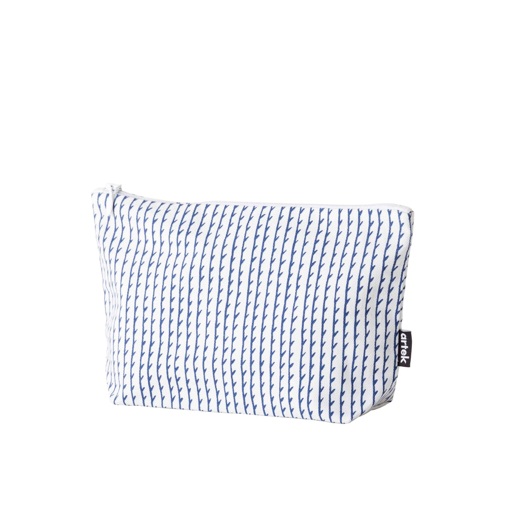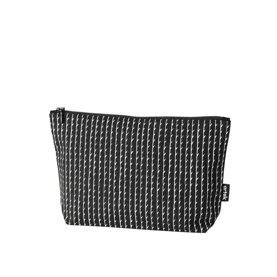 フィンランド語で「リヴィ」は「行」や「列」を意味し、限りなく続く平行線をハンドドローイングで表現しています。ロナン &エルワン・ブルレックによる「リヴィ」が施されたポーチは、日常使いに便利な大小の2サイズで展開しています。