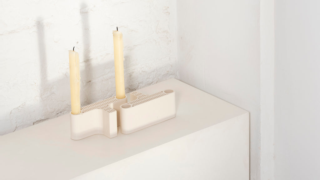 「ティーリ」シリーズは、陶芸家でありデザイナーのシャビエル・マニョサによってデザインおよび製造された、日々の暮らしのためのセラミック製プロダクトのシリーズです。「ティーリ」は、フィンランド語で「煉瓦(レンガ)」を意味し、普遍的で柔らかな美しさと、製品としての基本的な機能性を兼ね備えた、ウォールフック、フラワーベース、キャンドルホルダーをラインナップしています。